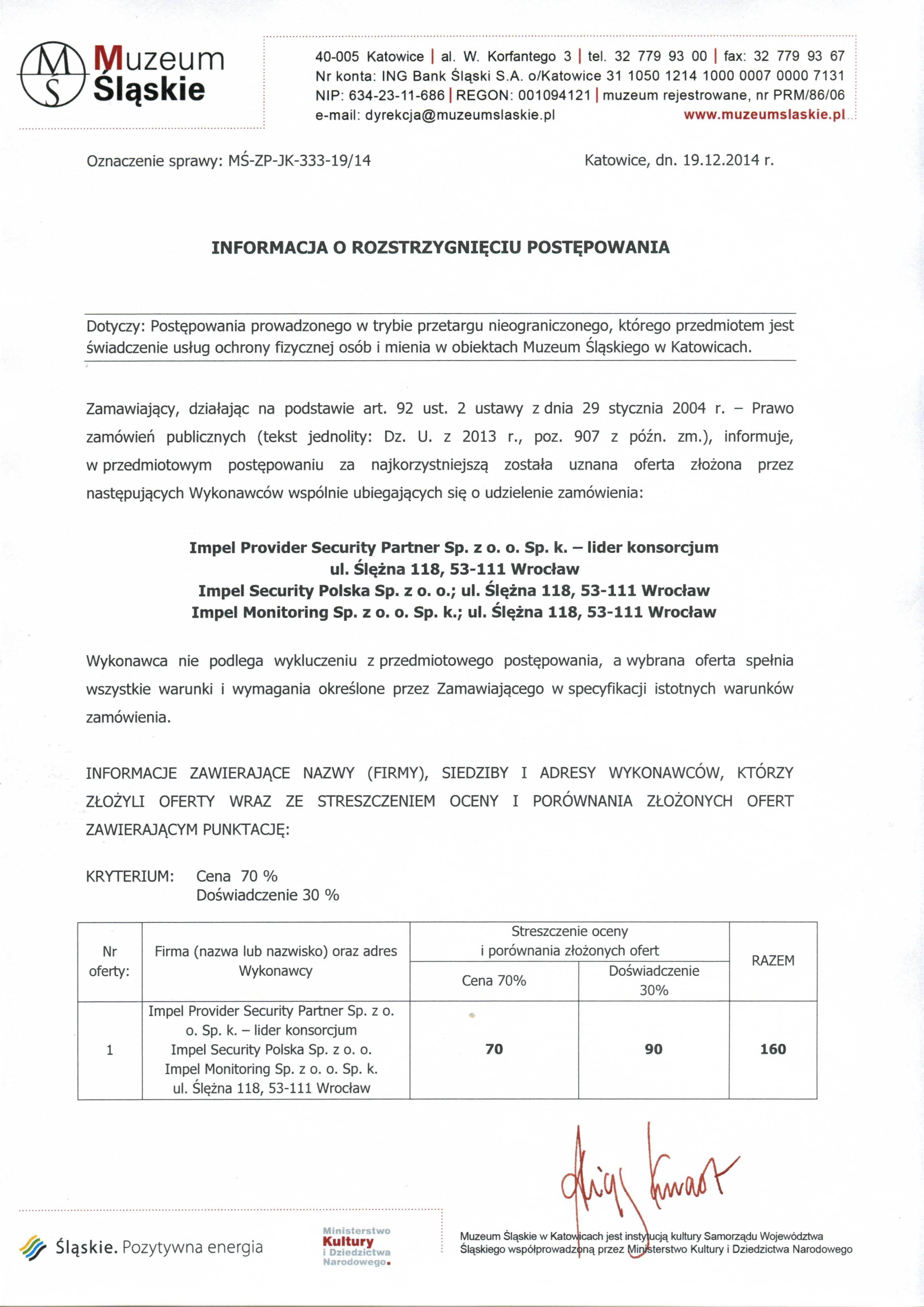 Informacja o ponownym wyborze oferty najkorzystniejszej 272 19.12.2014 14:28:41